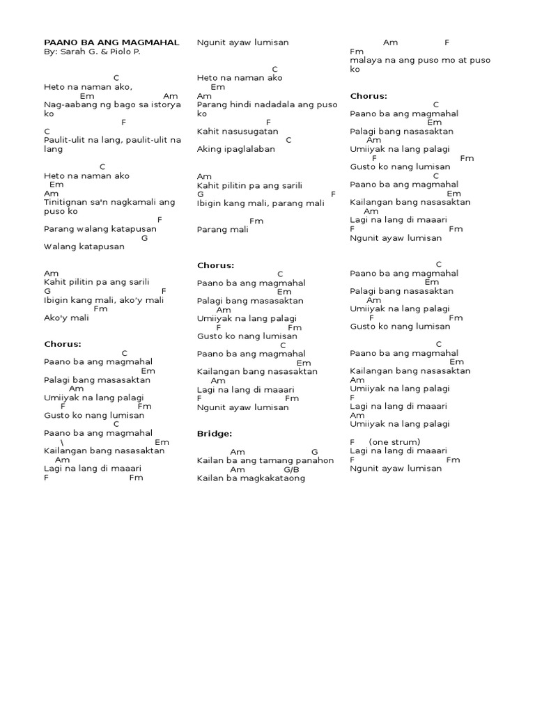 Ngunit ayaw lumisan Bridge Am G. Pencil Grip Paano Ba Ang Magmahal Lyrics. Paano Ba Ang Magmahal Lyrics and Chords updated this July 07 2015 C.